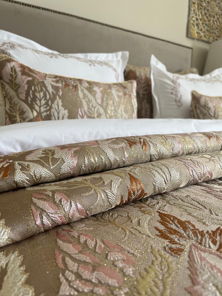 * 1 couvre lit en brocard brodé en relief couleur beige or en king size ou queen size