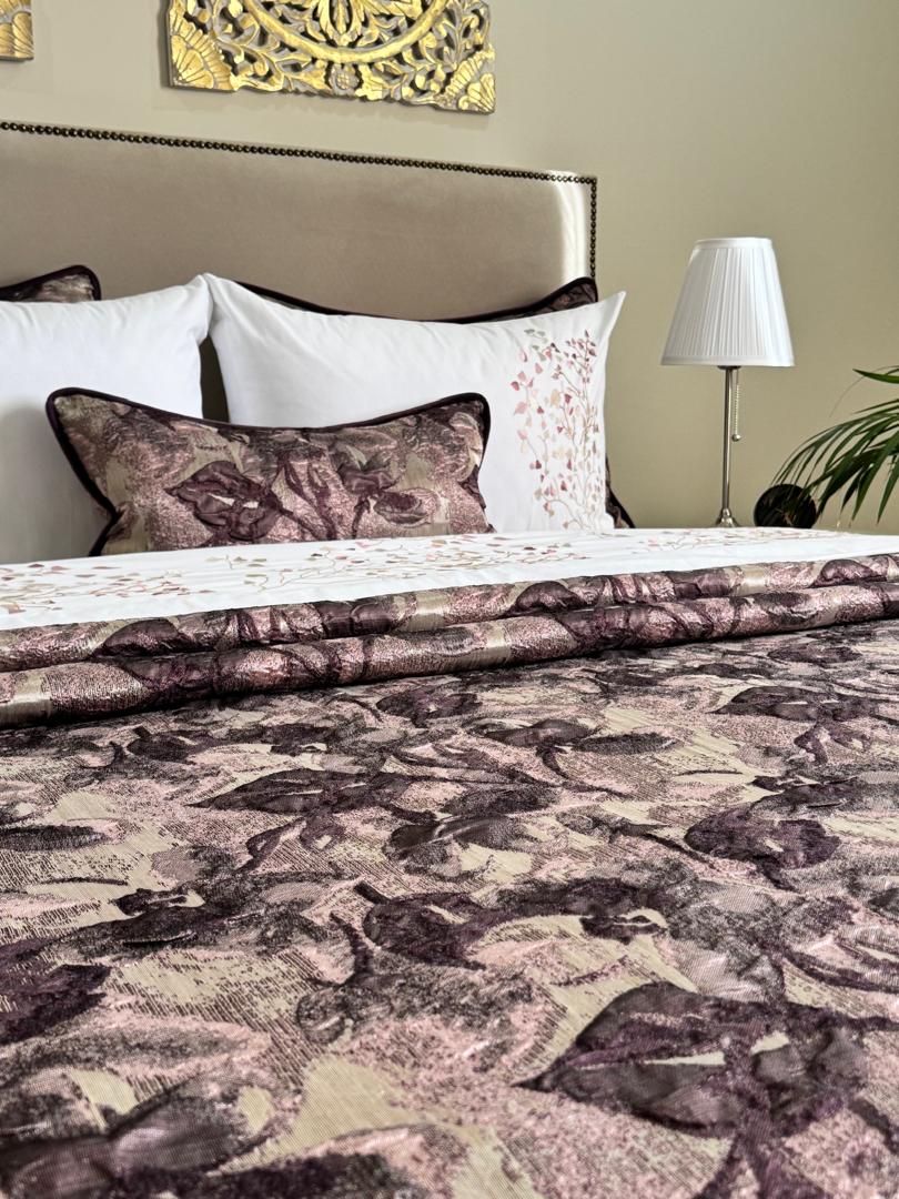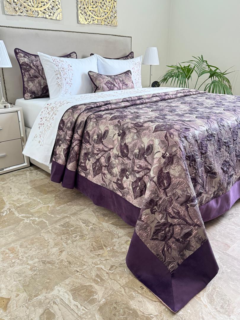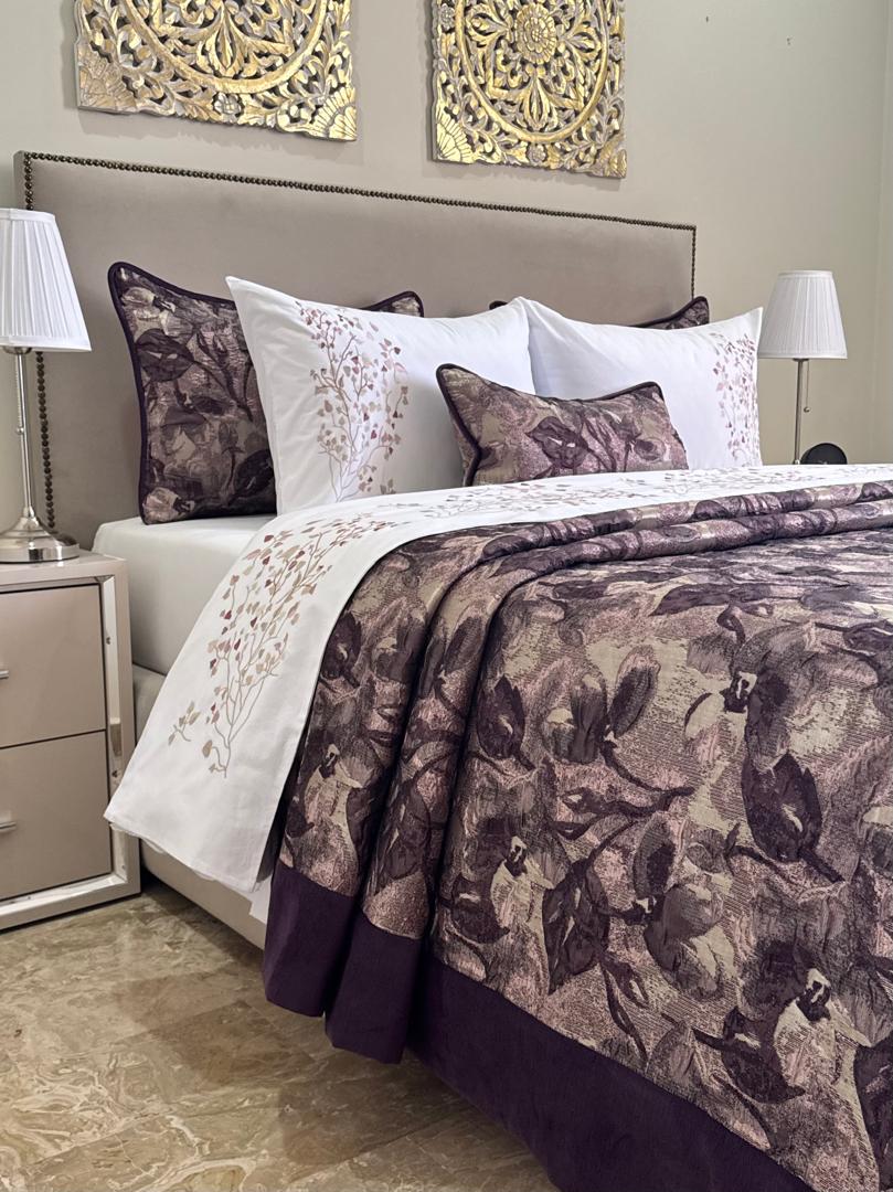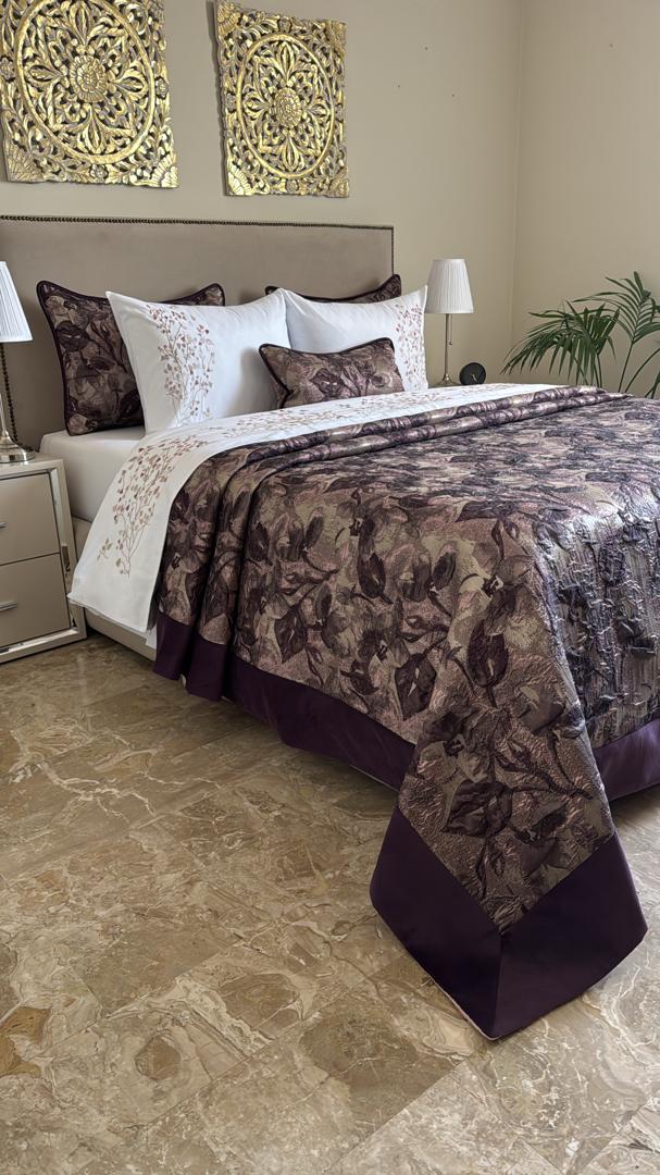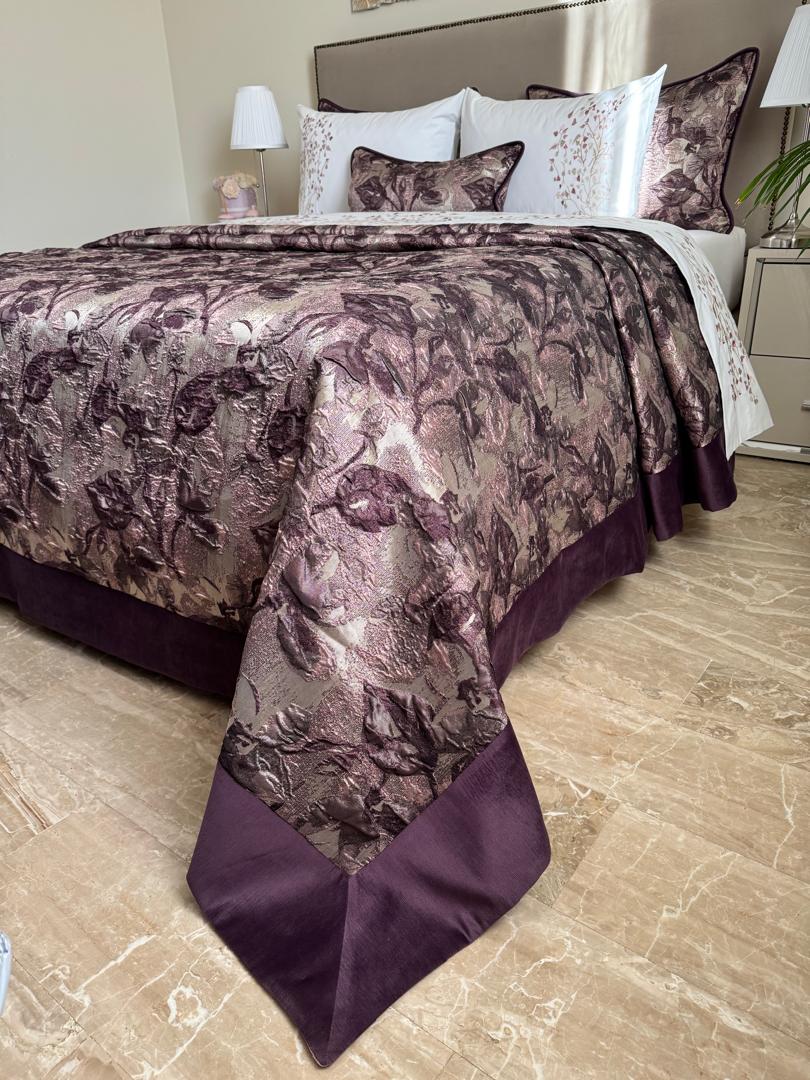 * 1 couvre lit en brocard brodé en relief couleur bronze et aubergine king (250*280cm)