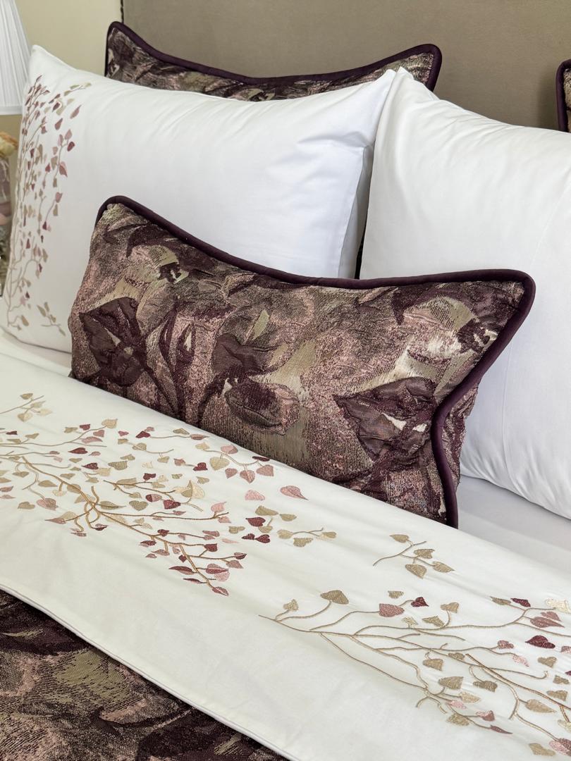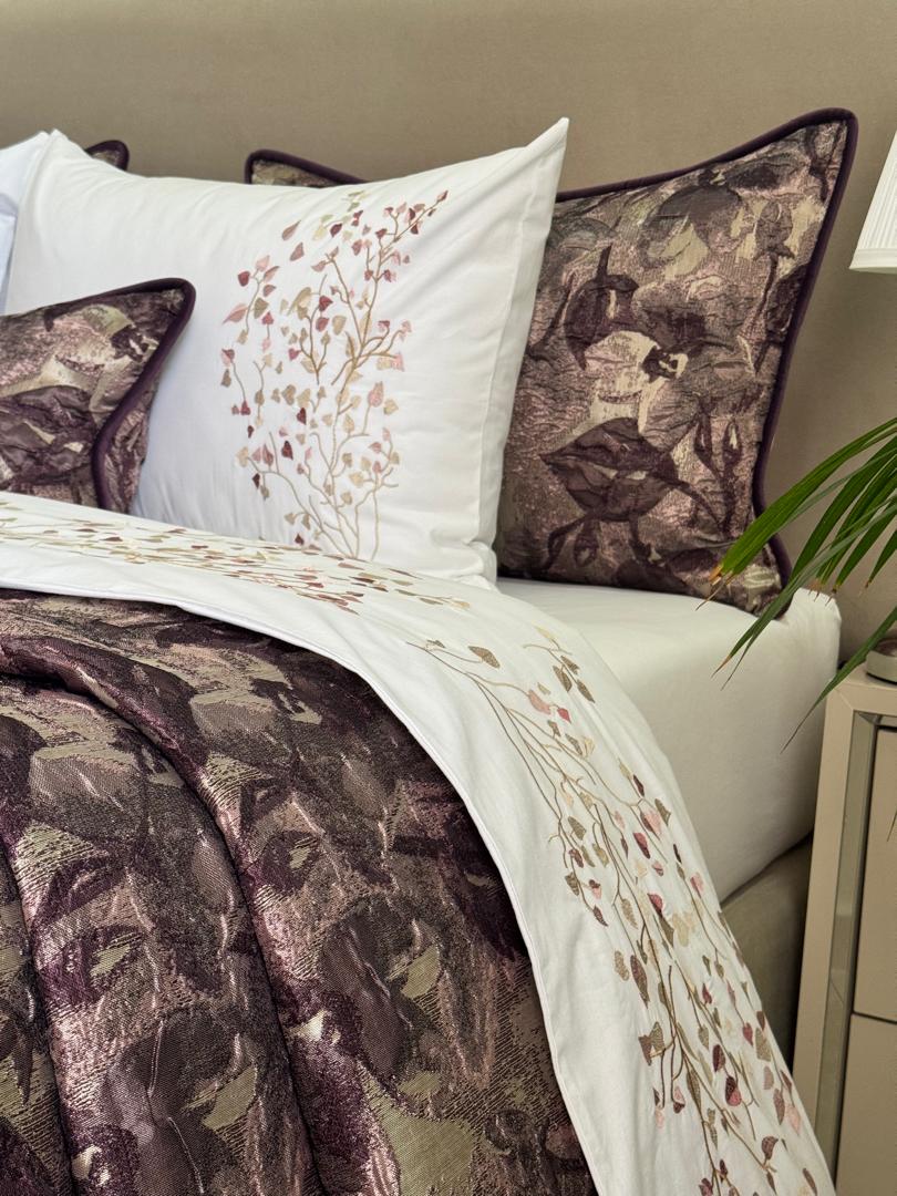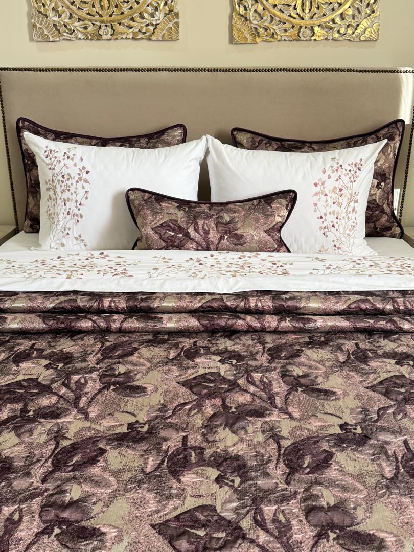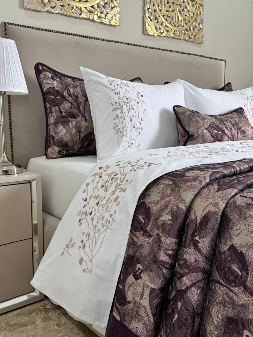 * 1 couvre lit en brocard brodé en relief couleur bronze et aubergine king (250*280cm)