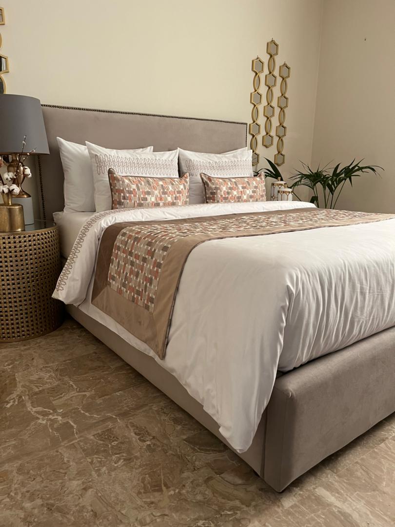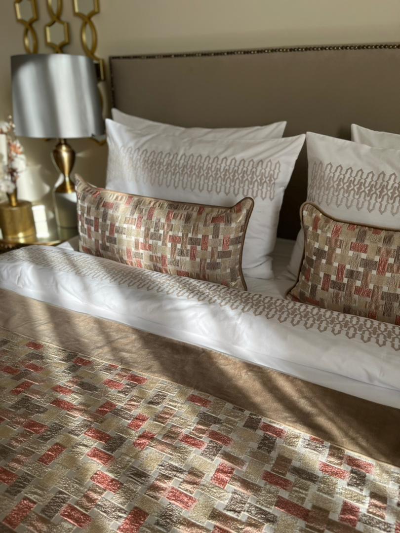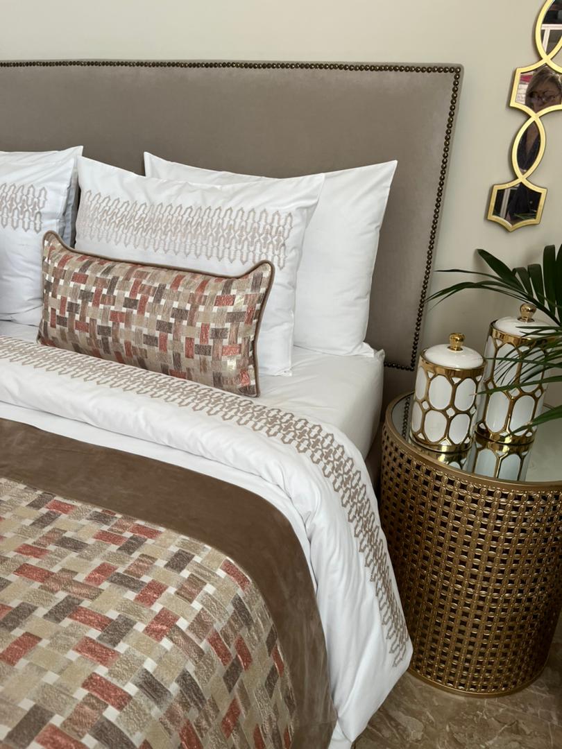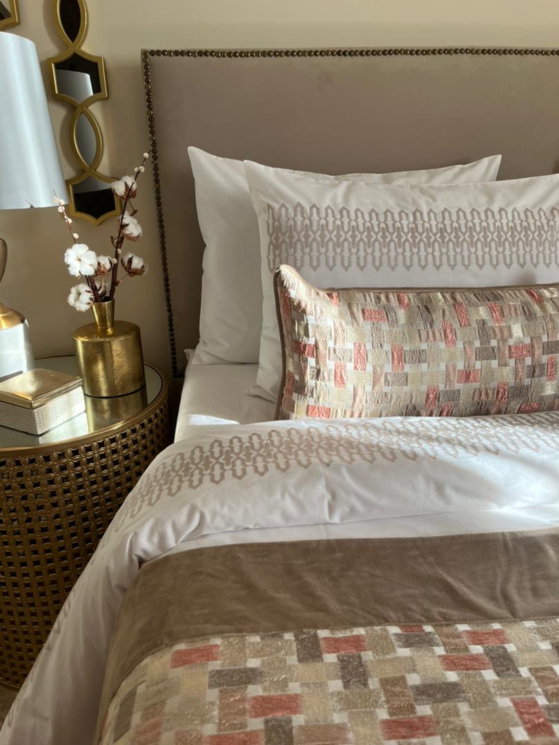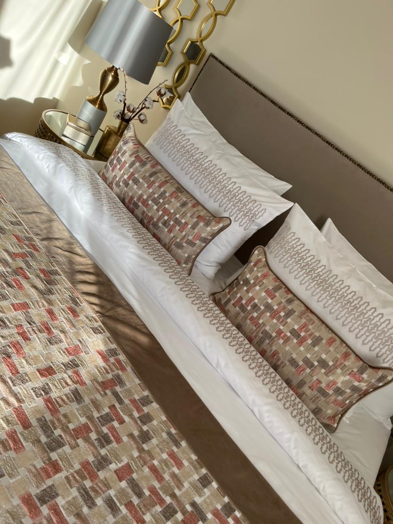 • Une parure de housse de couette brodĂ©e en 6 piĂšces