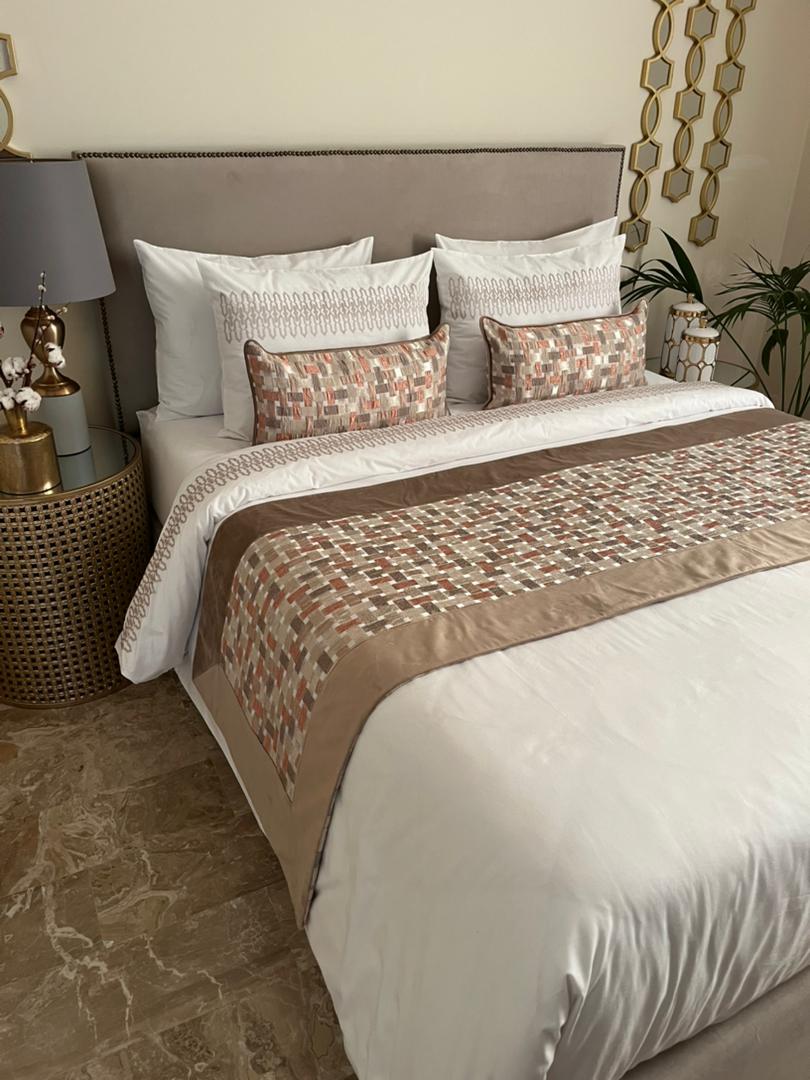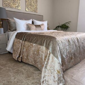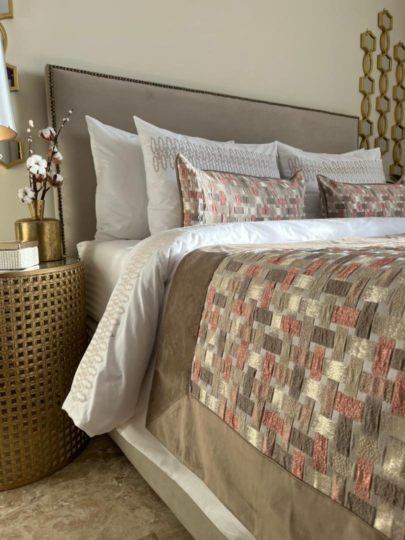1 chemin de lit en brocard avec bordure en velours couleur nude 70*240cm