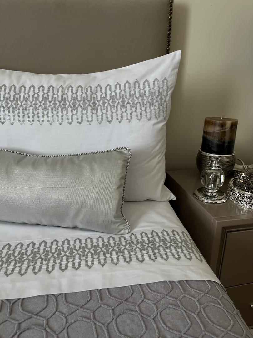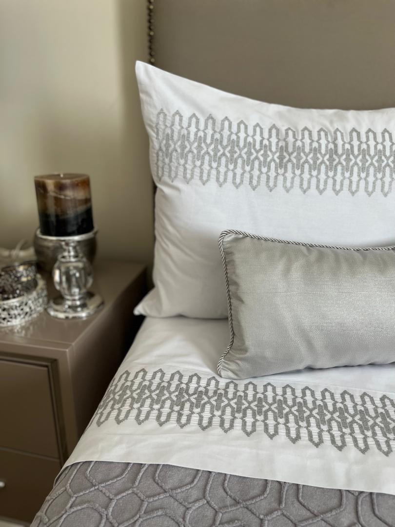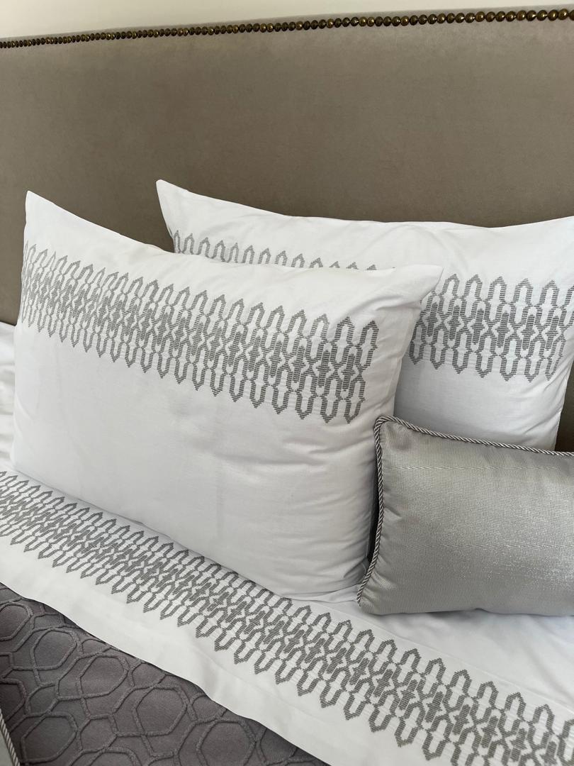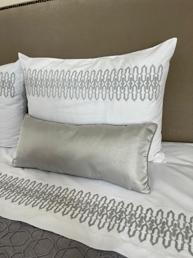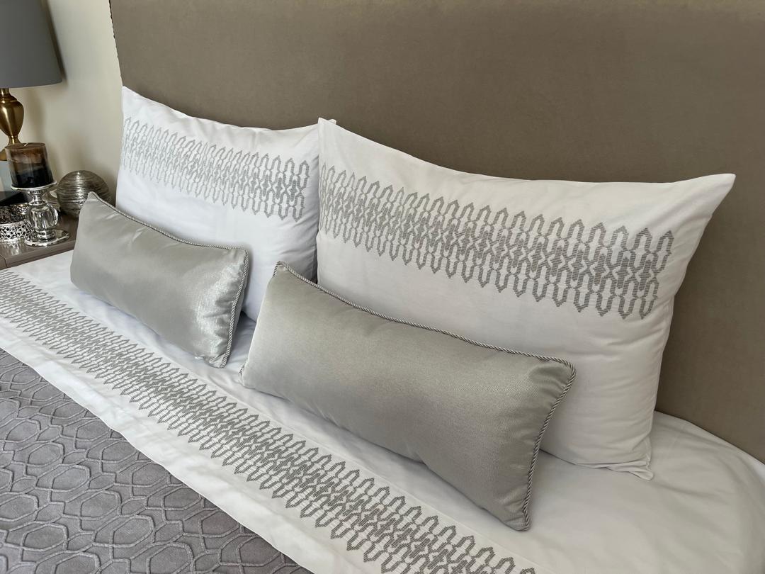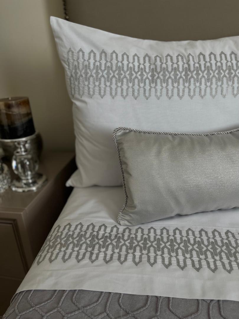 Parure housse de couette JACKARD 100% coton en 6 piÚces brodée au fil chaara couleur argent