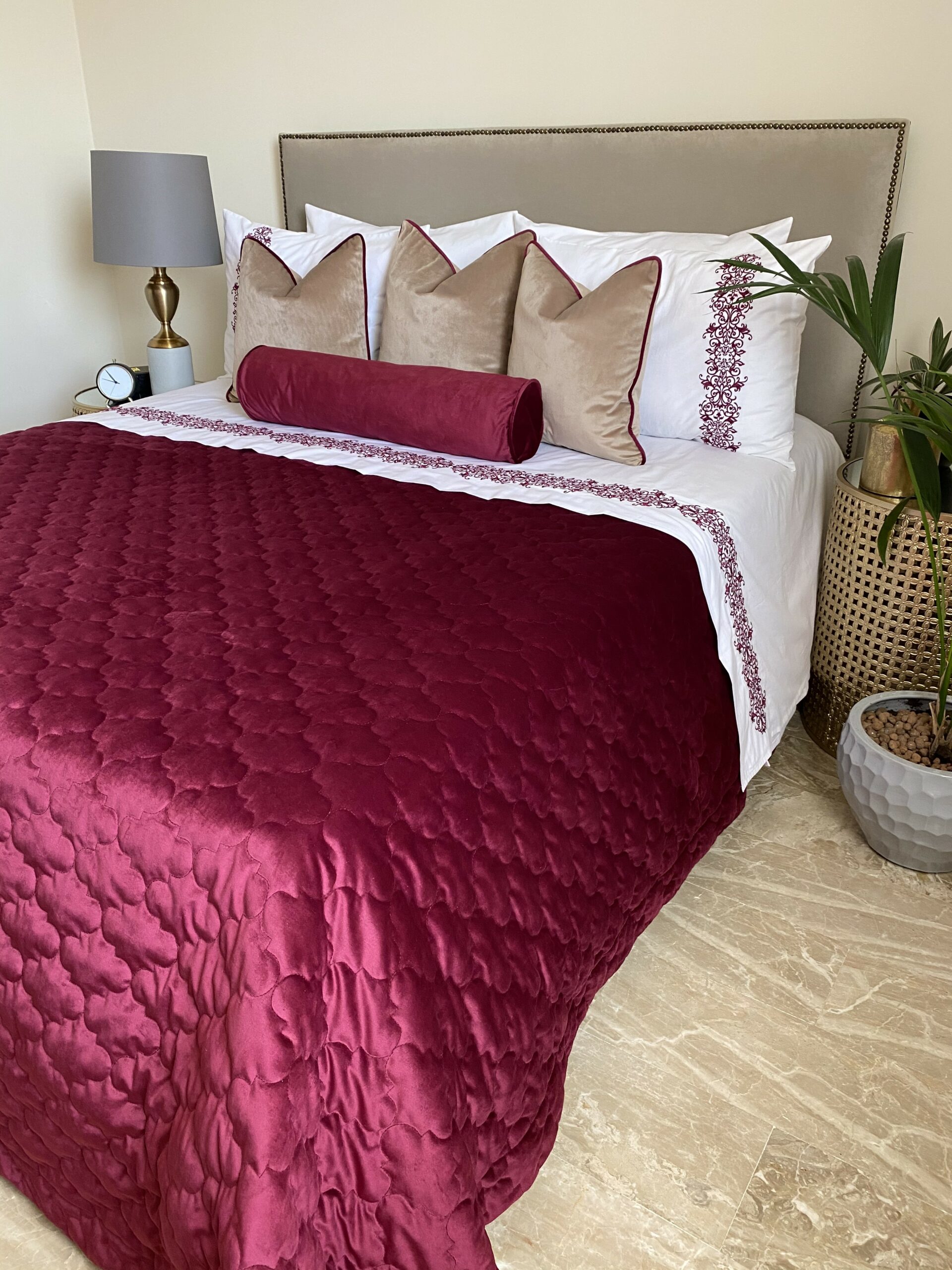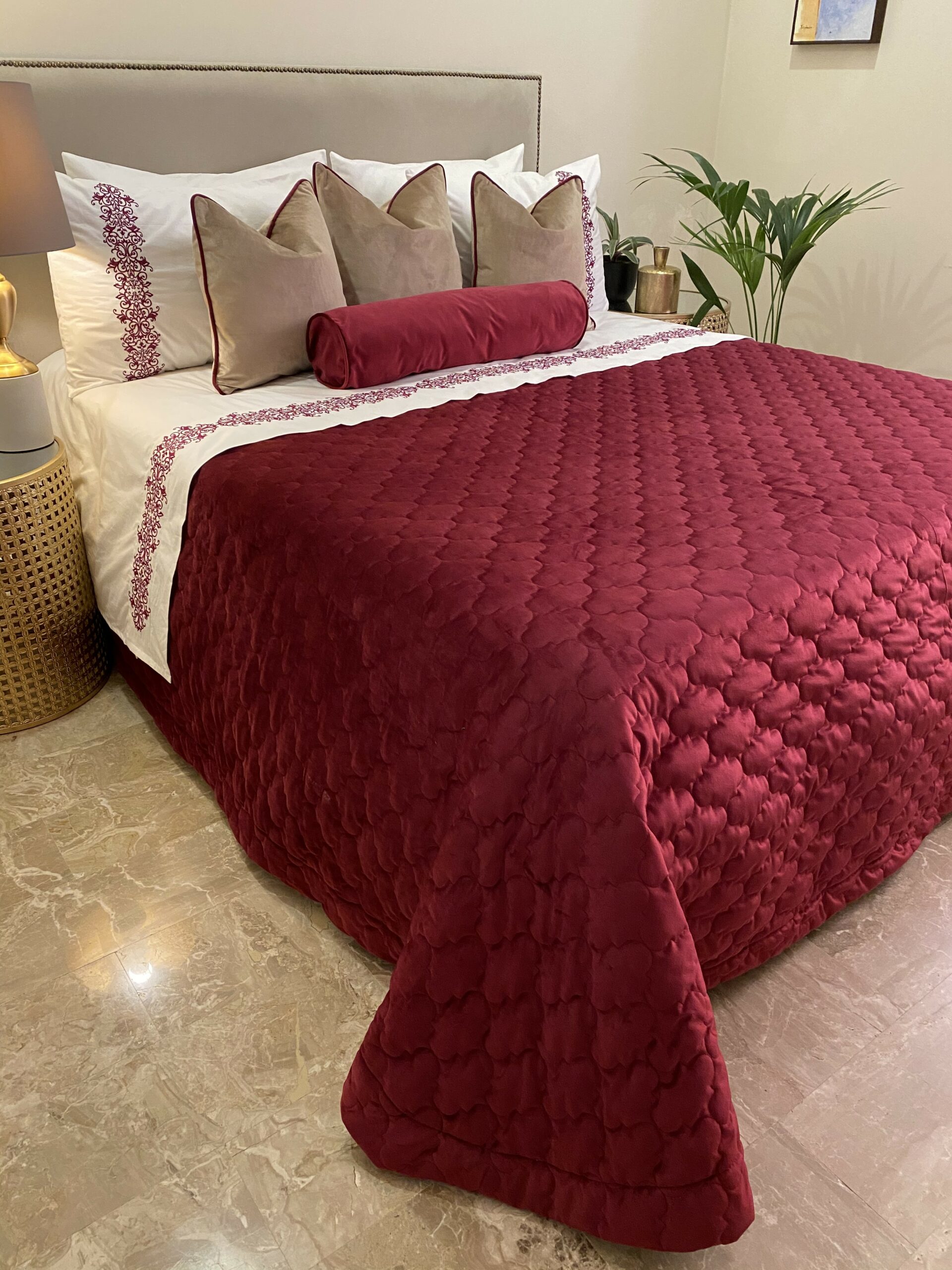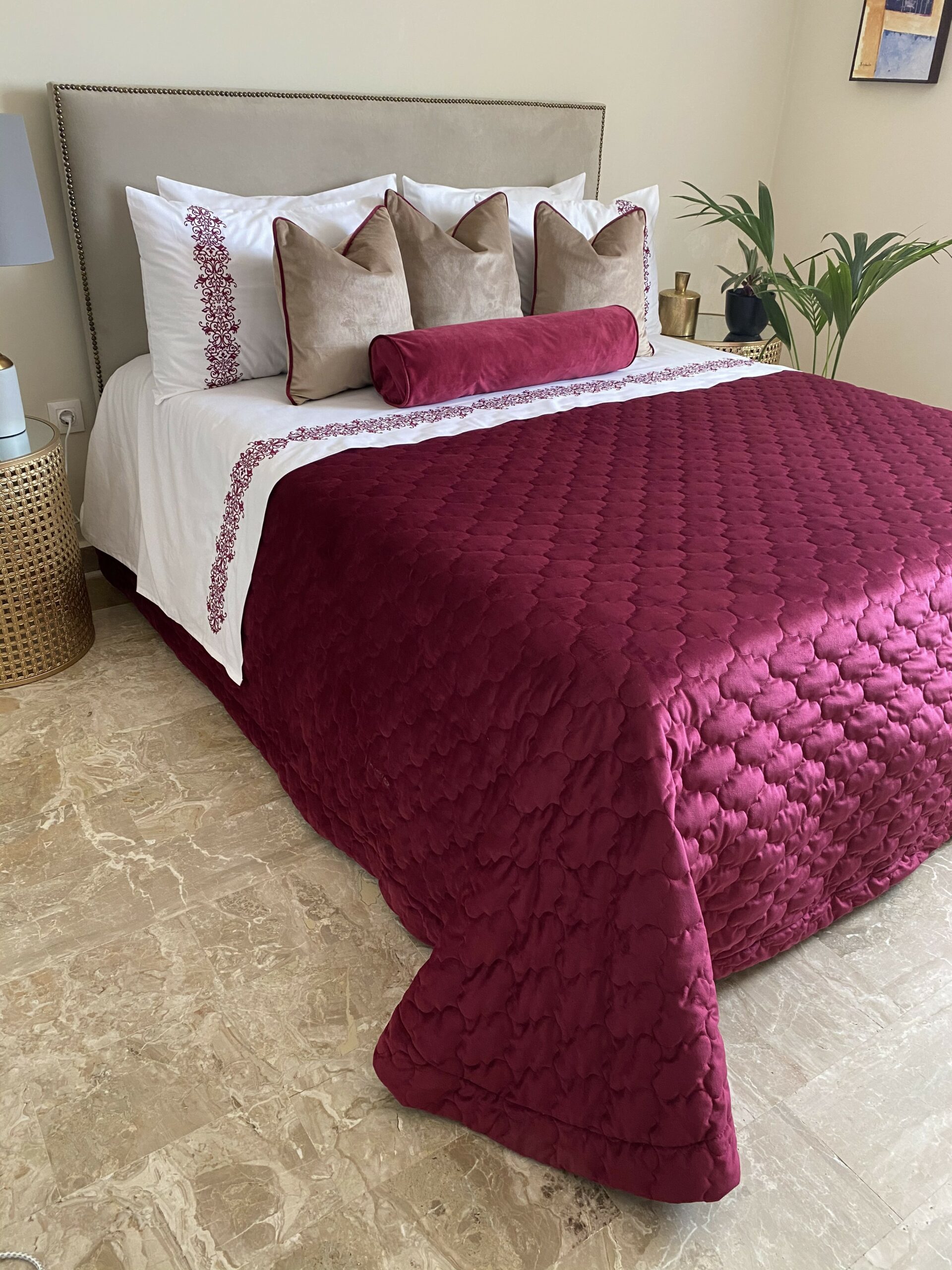 MATIERE : Couvre lit en velours mat grena matelassé